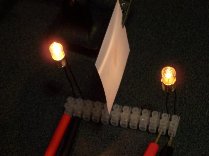 To do this, I place oil-soaked paper in the middle between two identical light bulbs, through which the currents to be compared flow.