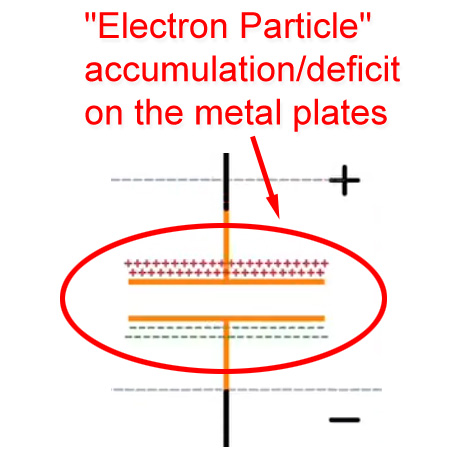*(Incorrect "electron particle" capacitor diagram)*