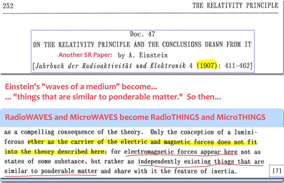 Then next step is combining this erroneous "electron particle" theory concept with the grand mistake of removing Maxwell's electromagnetic wave medium by Einstein in Special Relativity:
